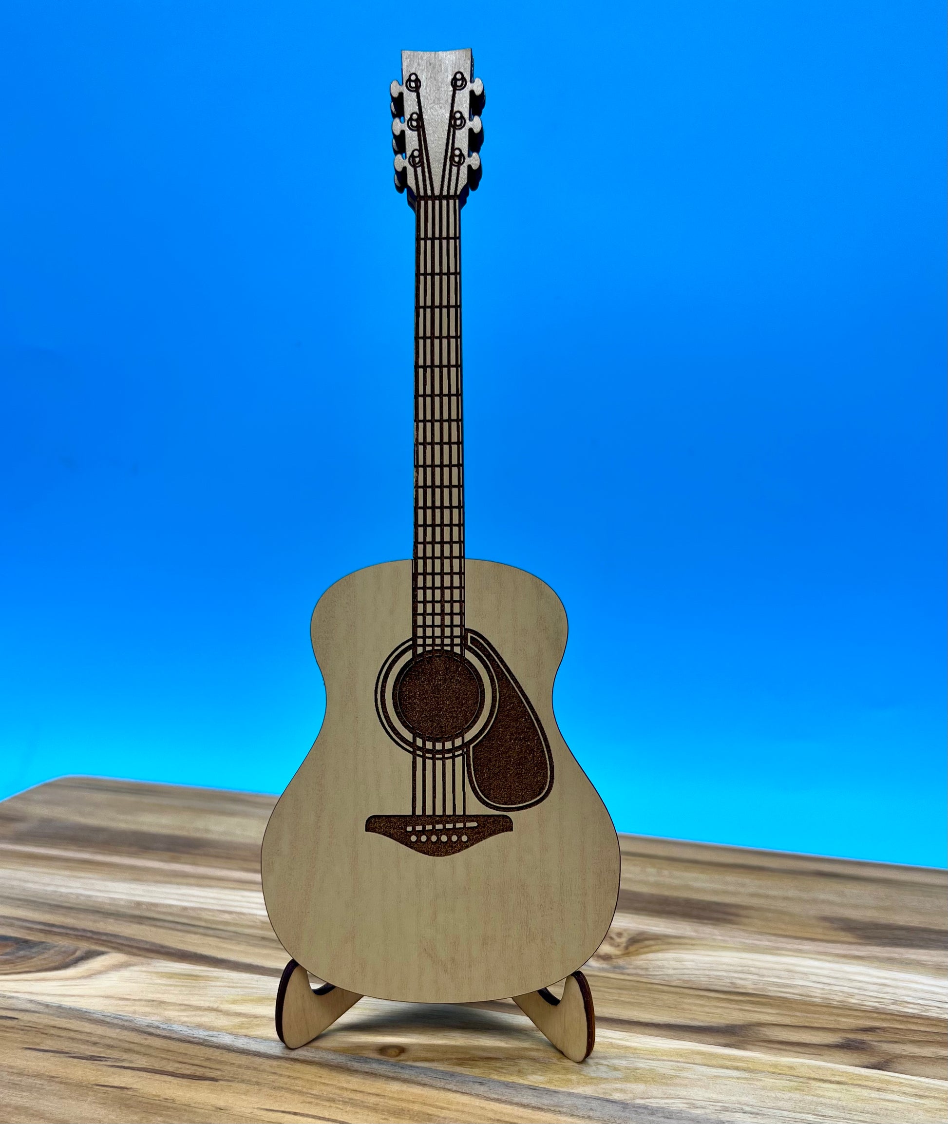Say goodbye to lost picks with our laser-engraved wooden acoustic guitar pick holder! No more digging through your pockets or losing picks in your guitar case. Expertly crafted and precisely cut, this pick holder keeps your picks organized and easily accessible. With our pick holder, your picks are always within reach so that you can focus on your music. Personalization is available and stand is included.