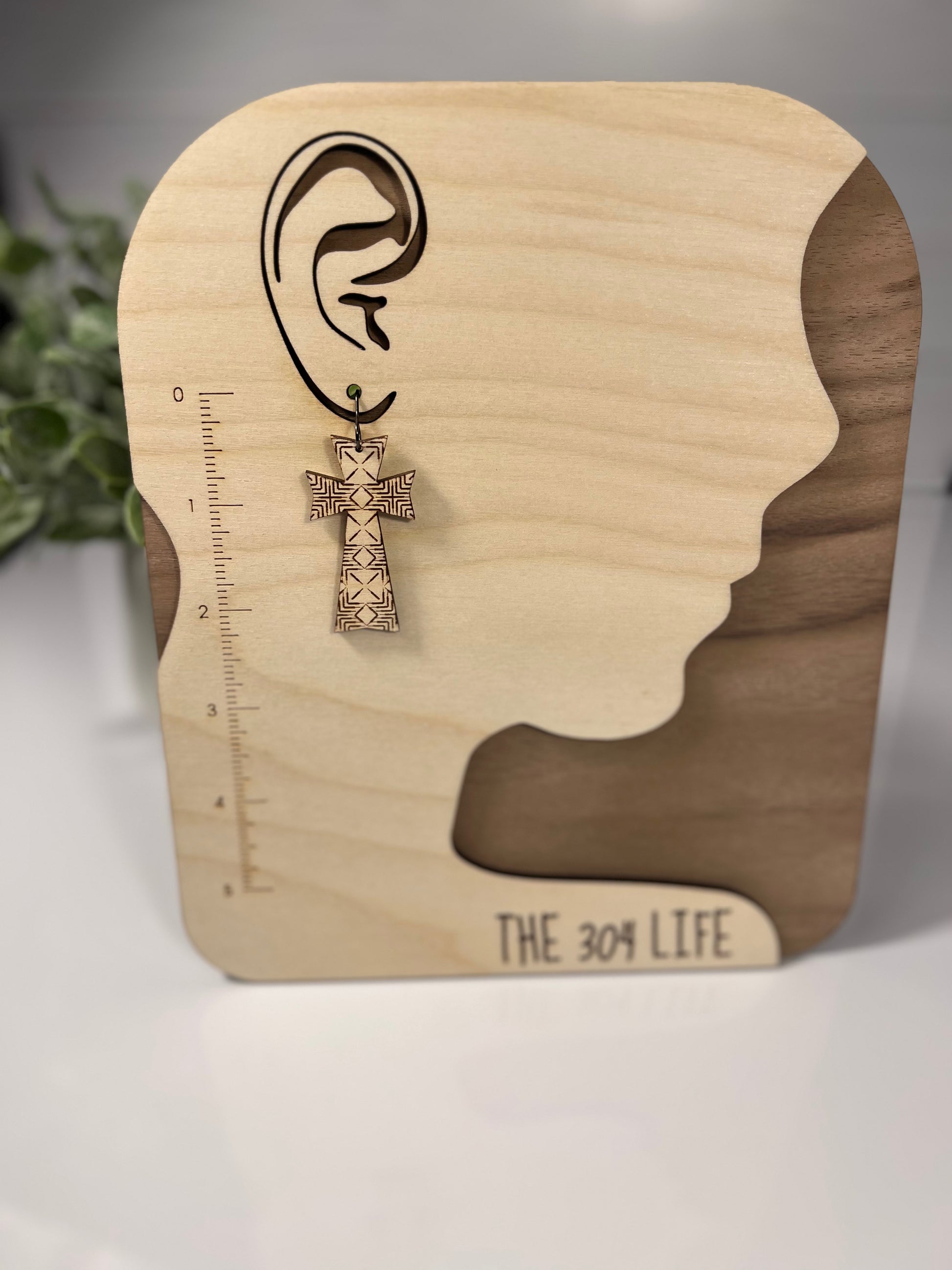 Make a statement with these bohemian-inspired wood cross earrings featuring an intricate laser-engraved design. These earrings are a work of art, carefully handcrafted and meticulously engraved to create a one-of-a-kind piece of jewelry.