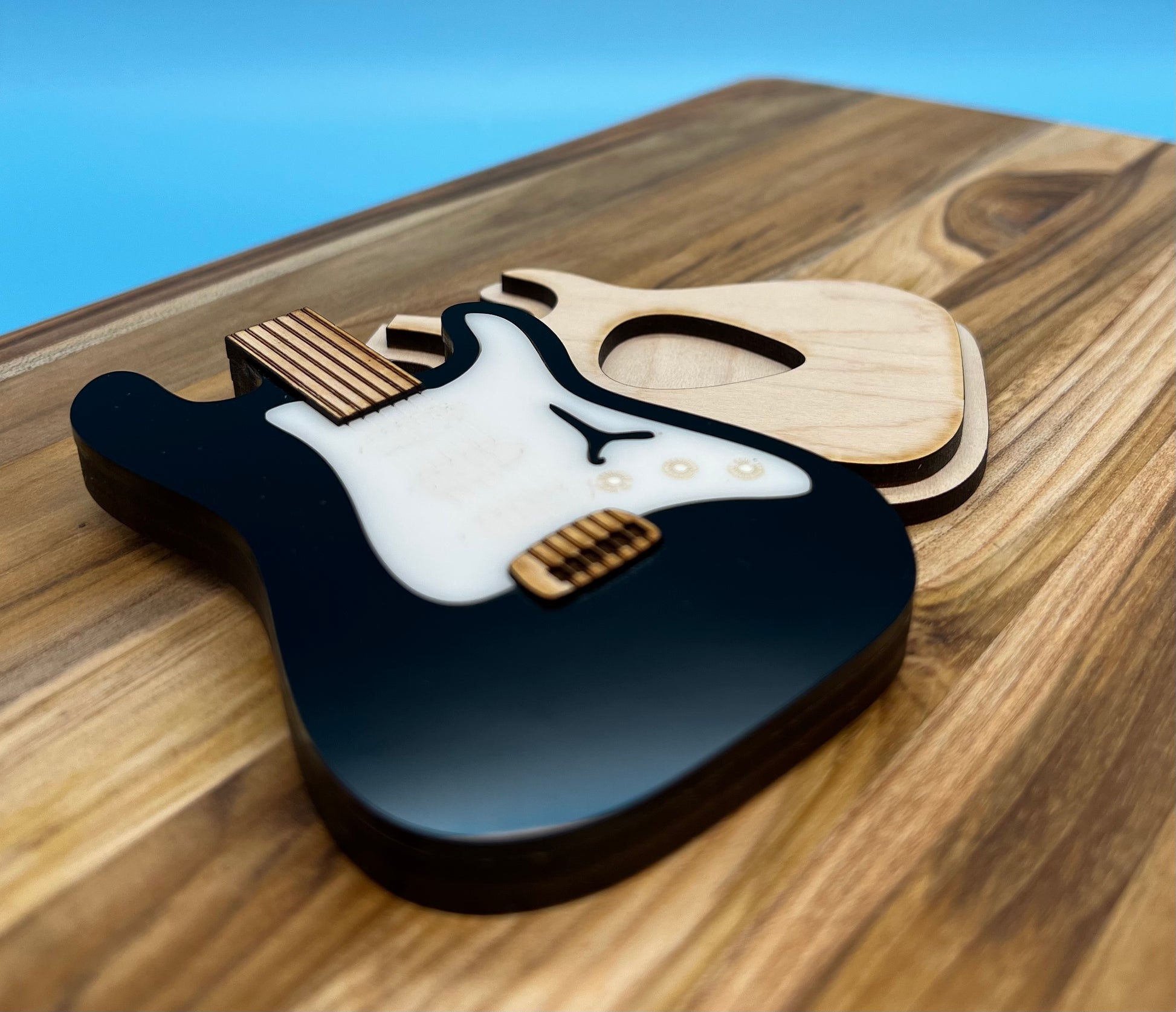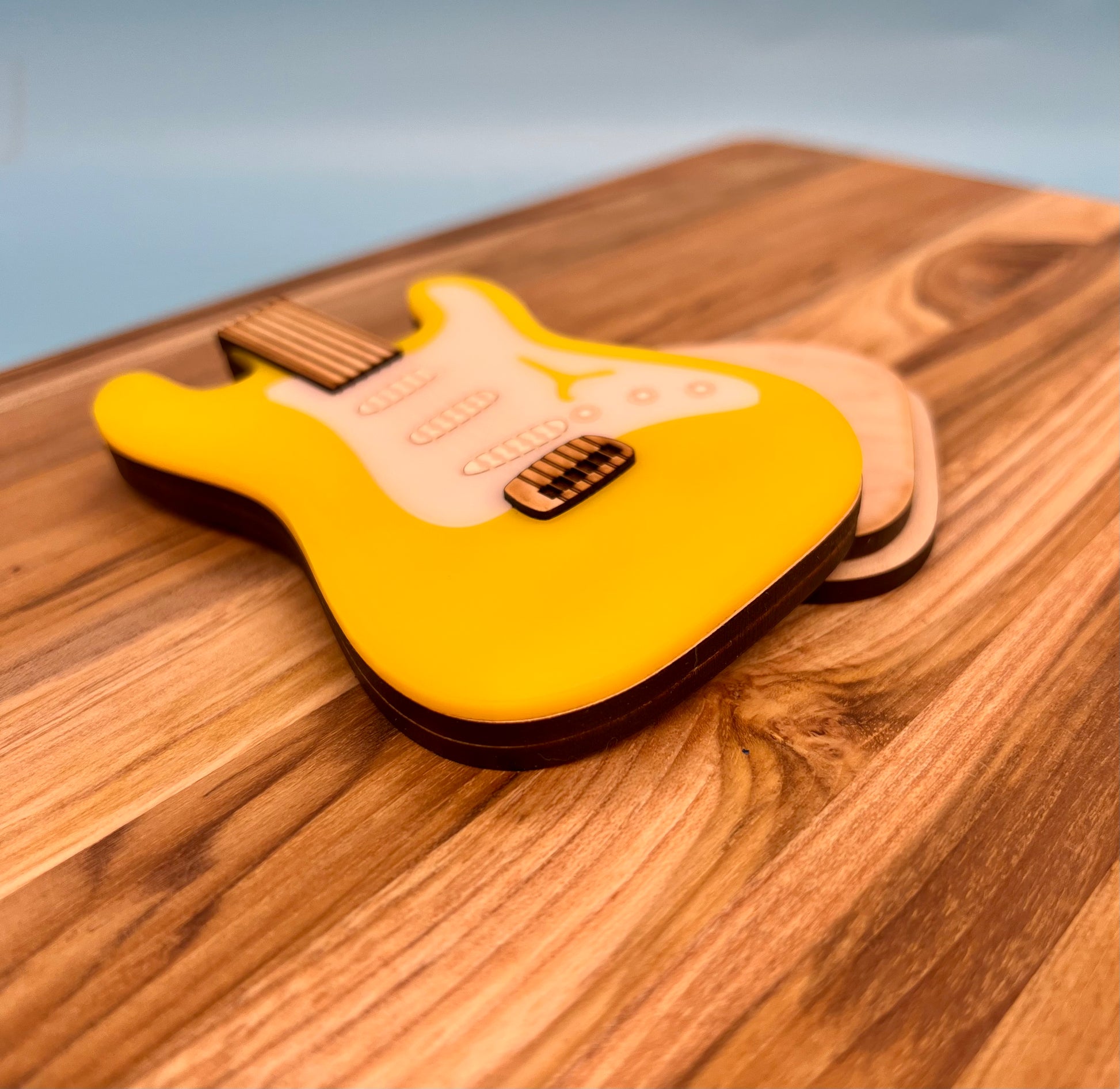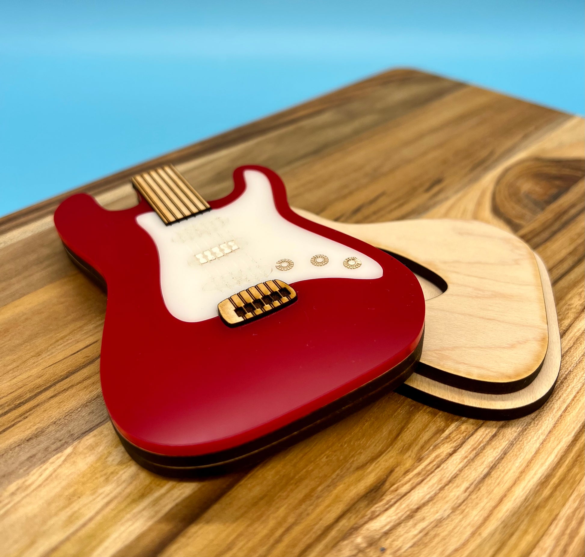 Introducing the Acrylic Guitar Pick Holder - the perfect accessory for any musician on the go. It is made from high-quality acrylic and wood and features a laser cut and engraved design that can be personalized. Whether it's your band's logo, your name, or a personal message, the Acrylic Guitar Pick Holder can be made truly one-of-a-kind. Not only is the Acrylic Guitar Pick Holder functional and stylish, but it's also practical. The compact size fits easily into any pocket or pouch, and the durable acrylic and wood materials protect your picks from wear and tear. Whether you're a seasoned musician or just starting out, the acrylic and wood guitar pick holder is a must-have for any guitar player. Guitar stand is included.