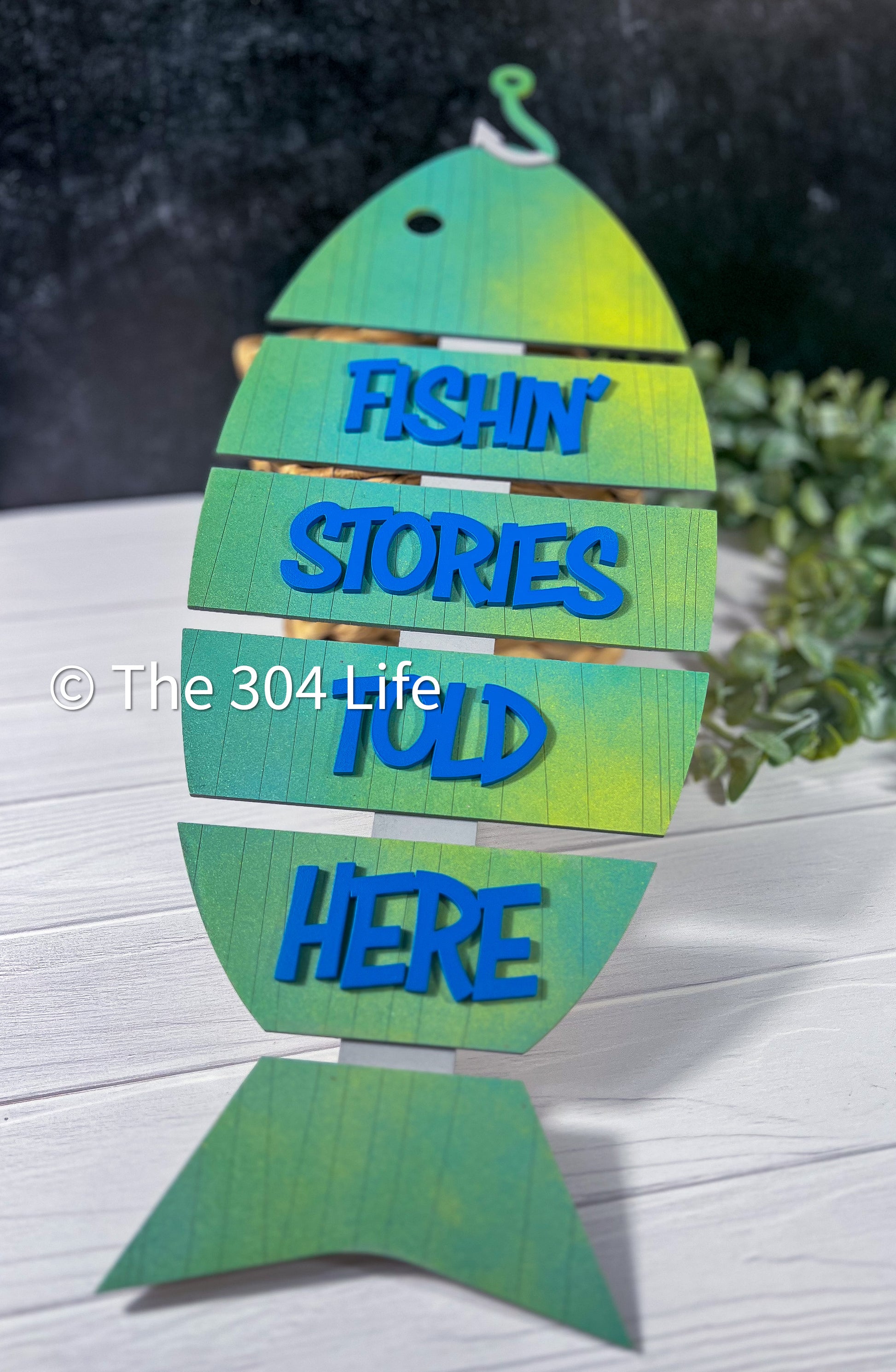 The 304 Life "Fishing Stories Told Here" sign is a beautiful and unique piece of home decor that is sure to add character to any room. Handmade with care and attention to detail, this sign is crafted from two layers of high-quality materials to create a three-dimensional effect.
