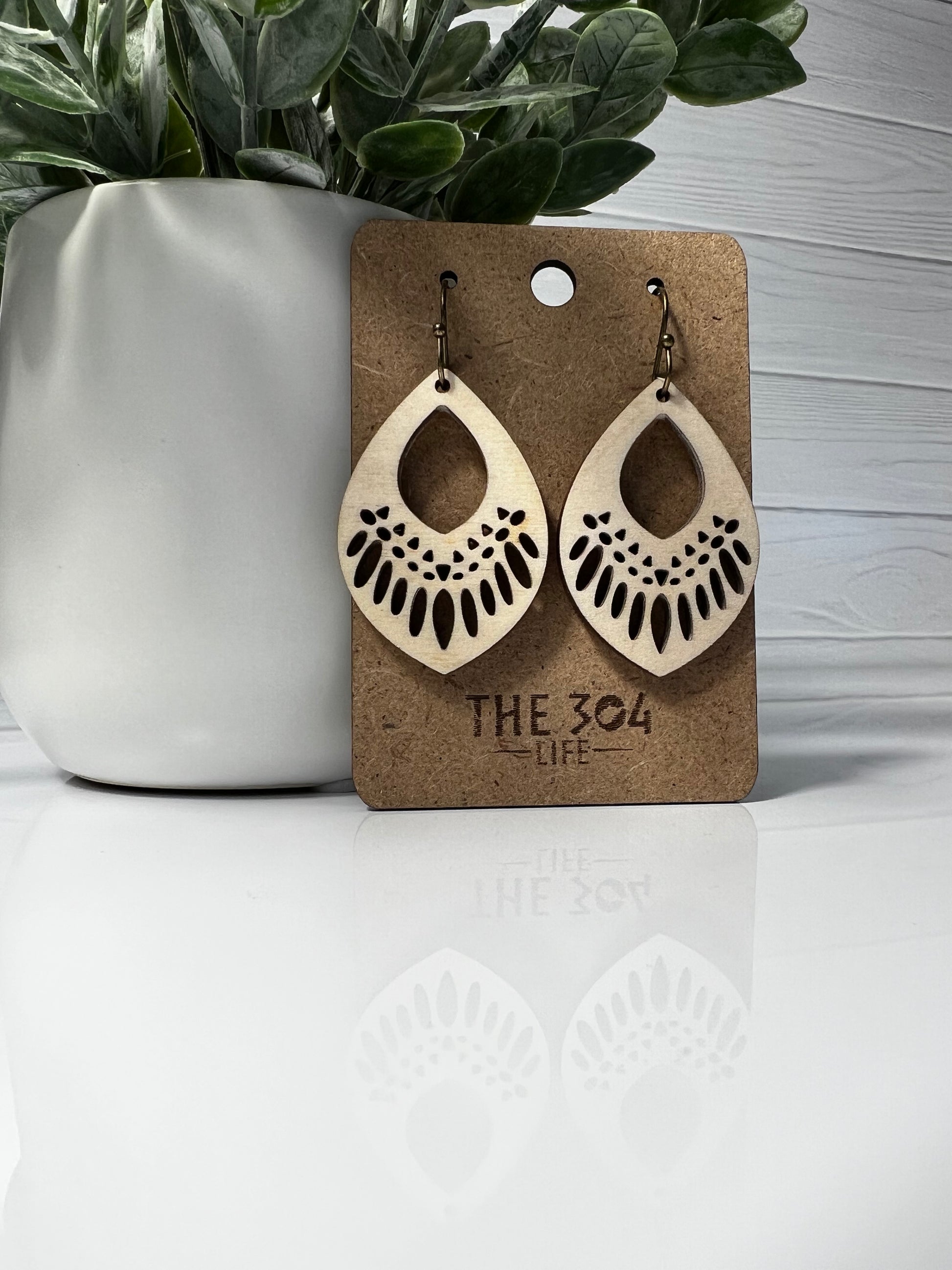 Add a touch of tribal flair to your jewelry collection with these stunning laser-cut wood earrings. The teardrop shape is accented with an intricate tribal design, which has been expertly laser-cut to create a mesmerizing effect.
